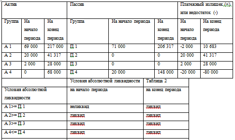 Таблица 1 Анализ ликвидности баланса