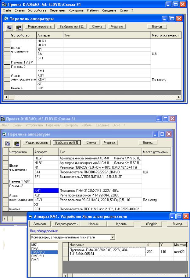 15. Указав в списке нужную позицию, нажимаем кнопку Выбор из БД. Отбирая по очереди типы аппаратов, заполняем таблицу.