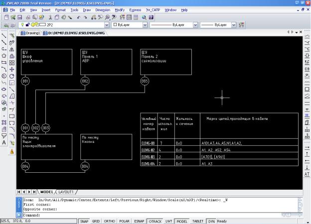 18. После необходимой корректировки, по кнопке Чертеж автоматически вычерчивается документ схема кабельных связей в стандартной форме.