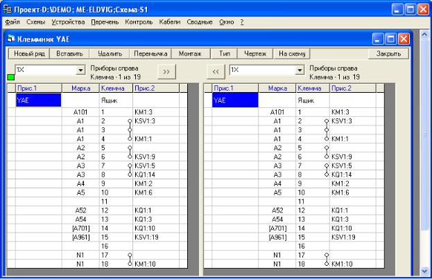 24. По кнопке На схему номера клемм автоматически переносятся на чертёж принципиальной схемы. По кнопке Чертеж автоматически рисуется выбранный ряд зажимов.