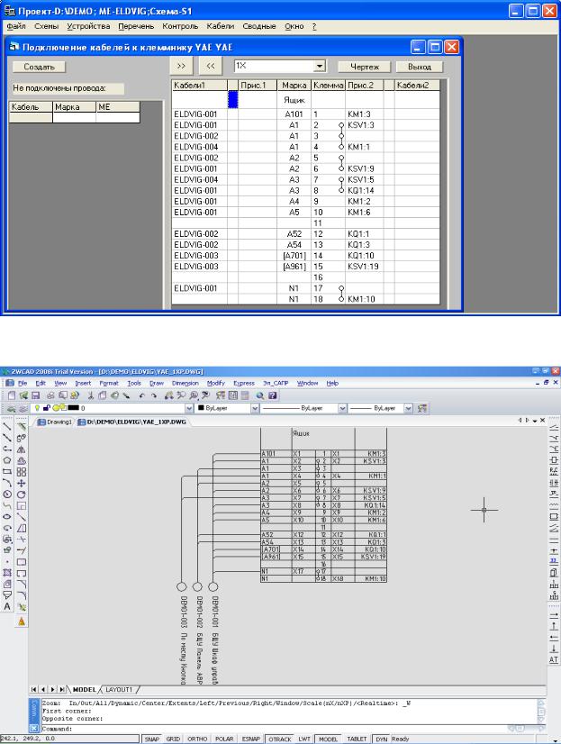 26. Для формирования схем подключения по кнопкам Монтаж – Подключение выводится форма подключения кабелей к рядам зажимов. Кабели автоматически подключаются по кнопке Создать.