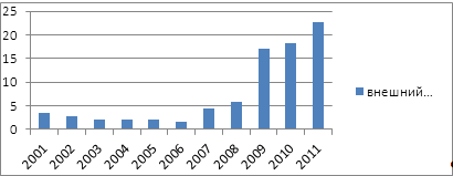 протяжении 2001 - 2011 гг. внешние займы органов государственного управления