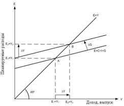 Рисунок В.3 - Влияние изменения государственных расходов на доход. Примечание - Источник: [16, с. 99]