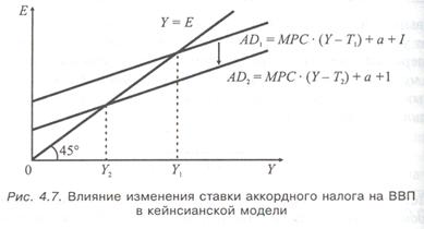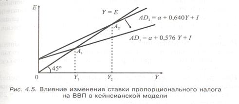 Рисунок В.5 - Влияние изменение ставки пропорционального налога на ВВП. Примечание - Источник: [1, с. 105]