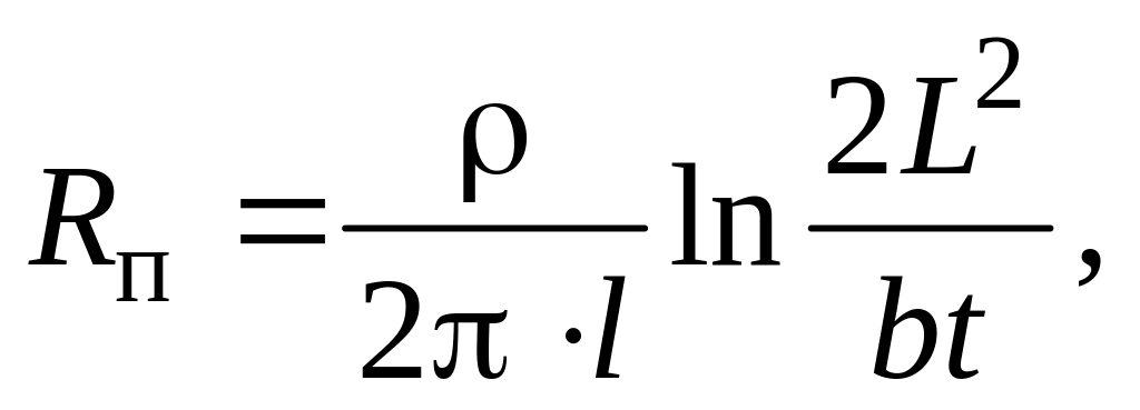 Длину токосоединительной полосы L и ее сопротивление растеканию определяют по следующим формулам: