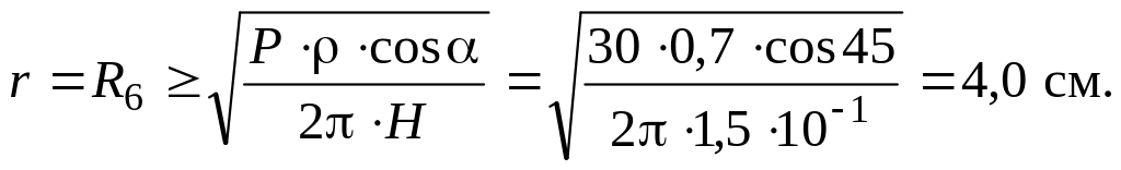 Рассчитать величину R6 для отражения лазерного луча при следующих значениях исходных данных: P = 30 Вт; ρ = 0,7; α = 45°; H = 1,5·10-1 Вт/см2.