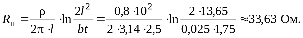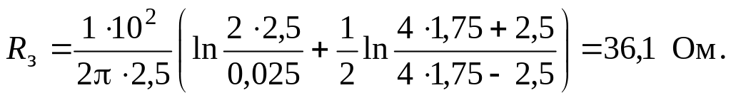 Рассчитаем сопротивление одиночного заземлителя по формуле (2) из табл.П9