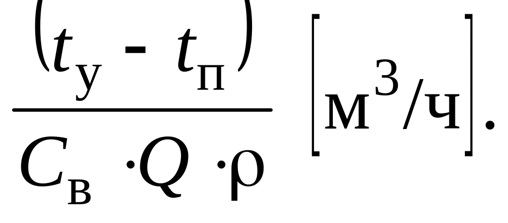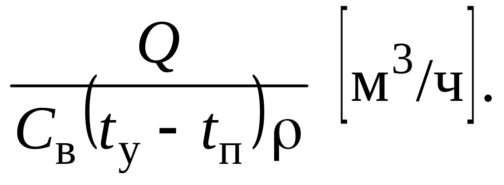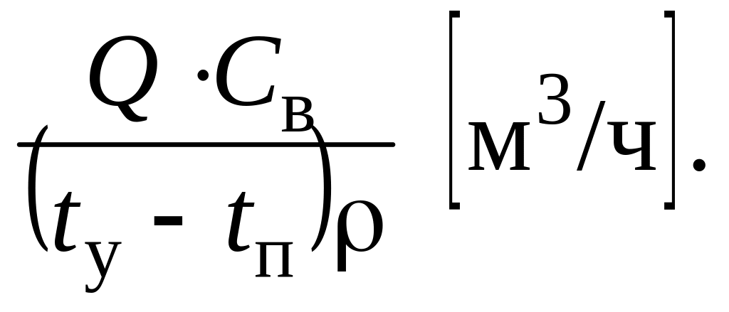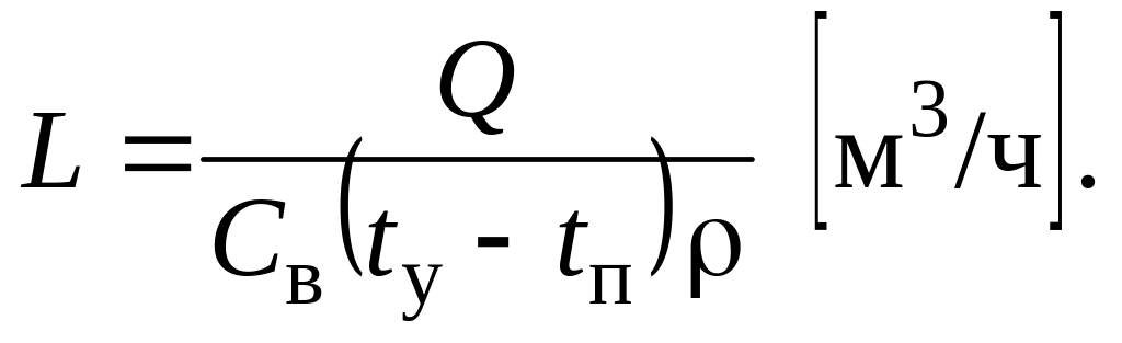 Укажите правильную формулу для расчета воздухообмена в помещении по поступлению в воздух рабочей зоны явных теплоизбытков.