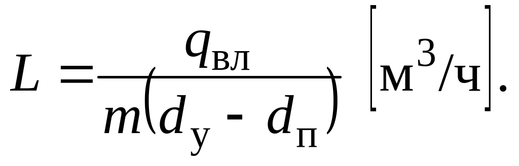 По какой формуле рассчитывается воздухообмен в помещении при нормальных параметрах метеоусловий и отсутствии вредных веществ или содержании их в пределах нормы?