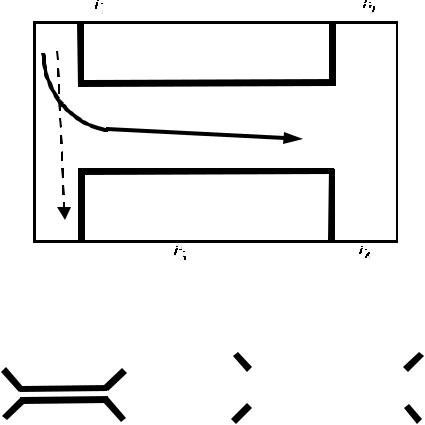 В зависимости от вида связи между основными и дополнительным каналами НО подразделяют на три основных типа: а) с распределенной электромагнитной связью; б) со связью шлейфного типа; в) с емкостной связью. По степени связи полосковые НО можно разделить на НО с сильной ( S31≤ –10 дБ) и со слабой ( S31≥ –10 дБ) связями. Две линии передачи, между которыми существует распределенная по длине электромагнитная связь, реализуют функции НО, если длина области связи составляет нечетное число четвертей длины волны, определенной для данных линий на центральной частоте, и выполняется условие согласования по всем входам. Такой направленный ответвитель называется ответвителем на связанных линиях передачи. В простейшем случае в качестве НО выступают две одинаковые однородные связанные линии длиной λ/4 (см. схематическое изображение направленного ответвителя на рис. 2.1), представляющие собой восьмиполюсную структуру.