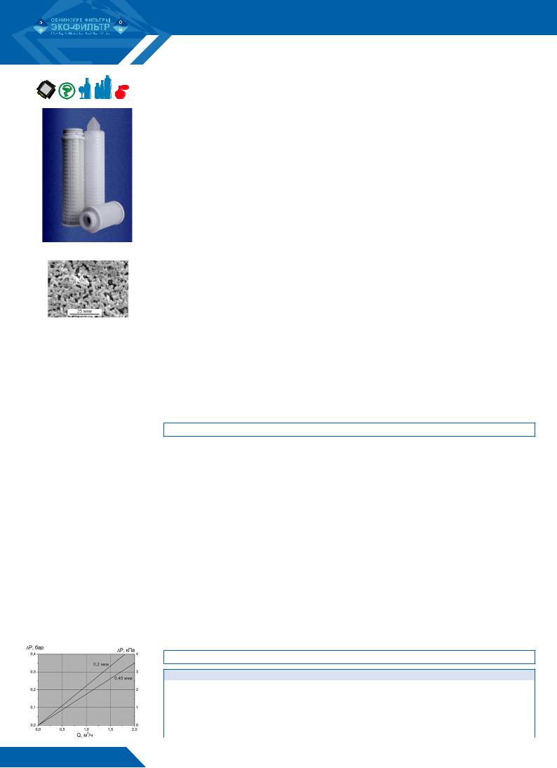 ЭКОПОРPES для фильтрации большого спектра жидкостей при нормальных и повышенных температурах, |