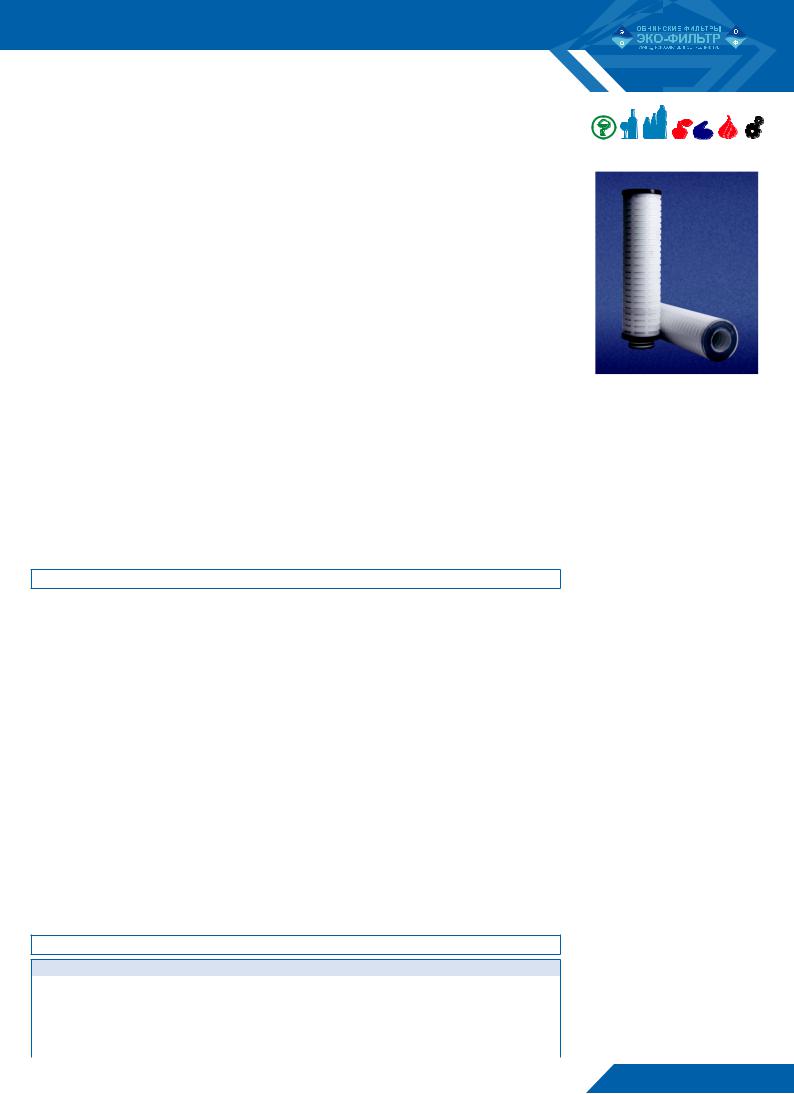 Большая площадь фильтрующей поверхности элементов ЭКОПЛЕН-F-G и их способность подвергаться регенерации с помощью различных химических реагентов обеспечивают высокую грязеемкость и большой ресурс работы.