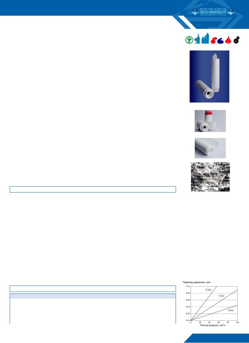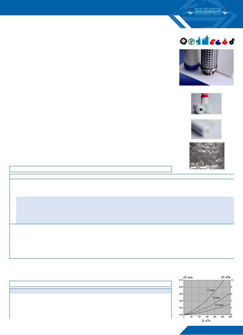 Высокая пористость мембраны из PTFE обеспечивает низкое сопротивление и высокую производительность элементов ЭКОПОР-F.