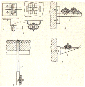 Рис. Примеры установки щитов и подключения к ним кабелей: а - щиты в