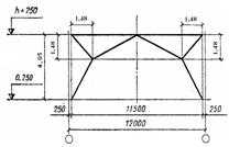 Подстропильные фермы перекрывают 12-метровые шаги колонн и образуют промежуточные опоры для расположенных с 6-метровым шагом стропильных конструкций.