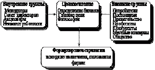 Анализ внешней и внутренней среды обычно считается исходным процессом стратегического управления, так как он обеспечивает базу для определения миссии и целей фирмы, и выработку стратегии поведения, позволяющую фирме осуществить свою миссию и достичь своих целей.