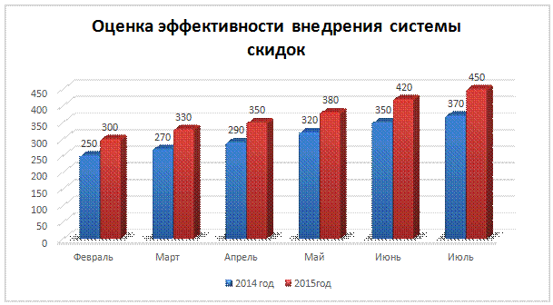 В связи с этим автор работы предлагает обеспечить клиентов накопительными картами, что позволит им, при достижении на карте определенной суммы баллов, полученной от каждой произведенной покупки, получить скидку, определенного размера. Это мотивирует клиентов совершать покупки более часто, нежели ранее.