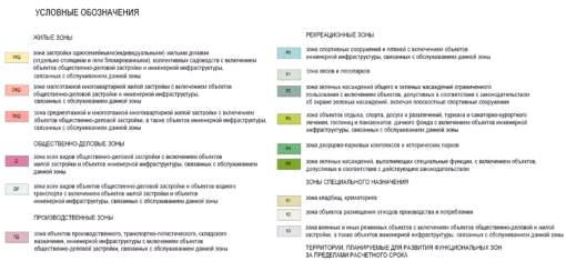 Рисунок 3. Условные обозначения к схеме функциональных зон