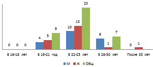 результаты начнем с анализа оптимального возраста вступления в брак.