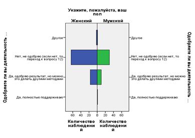 Диаграмма 11. Соотношение данных двух вопросов «Одобряете ли вы деятельность догхантеров?» и «Ваш пол»