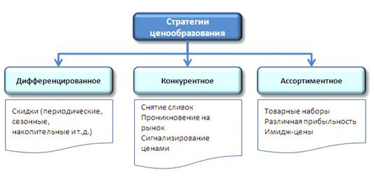 на три вида: дифференцированное, конкурентное и ассортиментное ценообразование