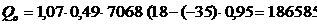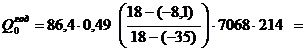 где 1,07 - коэффициент, учитывающий дополнительные теплопотери принимаемая 7%; по СНиП.0 - удельная тепловая характеристика здания и принимается в зависимости от объема здания, Вт/м³ °С.- объем отапливаемой части здания по внешнему обмеру, м²;