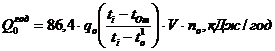 Годовой расход теплоты на отопление: