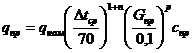 где qном - номинальная плотность теплового потока, Вт/м²;, р - экспериментальные данные показателей степеней.