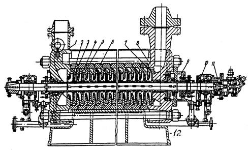 - секция; 7 - направляющий аппарат промежуточной ступени; 8 - крышка напорная;