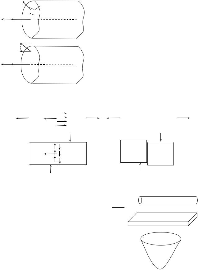 що перпендикулярна до площини перерізу– нормальне напруження і складову tn , що дотична до площини перерізу – дотичне напруження. З нормальним напруженням s n пов’язана лінійна деформація e і руйнування матеріалу шляхом відриву. З дотичним напруженням tn пов’язана деформація зсуву g і руйнування шляхом зрізу (рис. 1.3). Одиниці напруження в міжнародній системі одиниць: ньютон на квадратний метр ( H