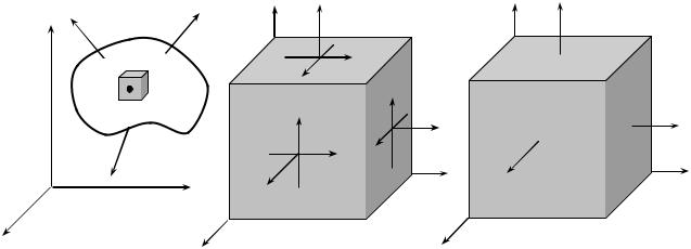Для дослідження напруженого стану в будь-якій точці тіла потрібно знати певні величини. Для визначення цих величин розглядуване тіло відносять до довільно орієнтованої системи координат x, y, z, і виділяють з цього тіла безмежно малий елемент так, щоб дана точка знаходилась в середині цього елементу. Елемент орієнтують таким чином, щоб його сторони були паралельні до вибраних координатних осей (рис. 3.1, а).