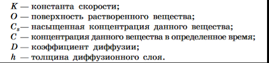 скорость растворения растет с увеличением РН, а для слабых оснований – падает. Растворимость солей отличается от растворимости соответствующих кислот или оснований. Например, натриевые и калиевые соли слабых кислот, так же как и соли сильных кислот со слабыми основаниями, растворяются лучше, чем свободные кислоты или основания. Объясняется это буферной мощностью диффузионного слоя.
