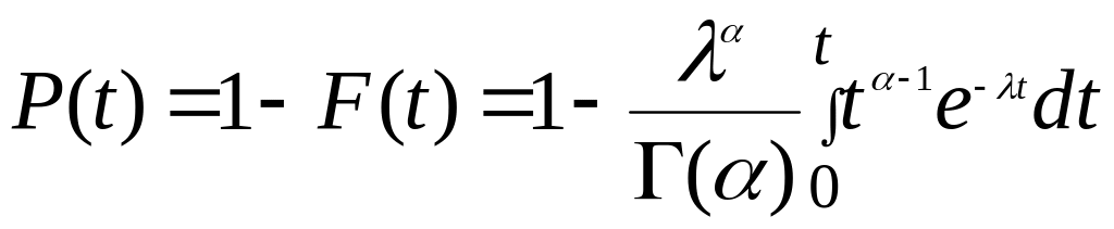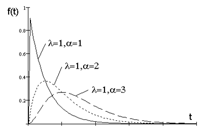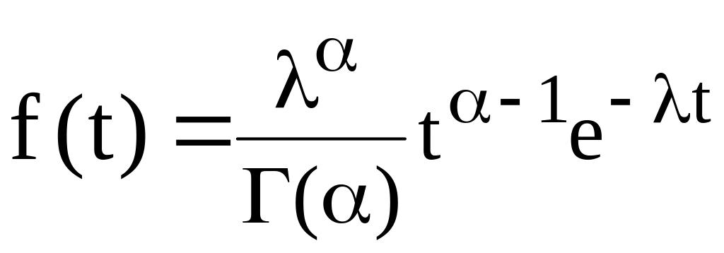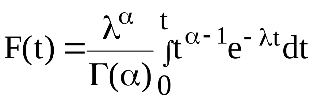 Распределение характеризуется двумя параметрами: λ – параметр масштаба и α – параметр формы. Оно имеет ограничение с одной стороны (0 t ). Если параметр формы кривой - целое число, то гамма-распределение списывает время, необходимые для появления событий (например, отказов) при условии, что они независимы и появляются с постоянной интенсивностью . Это распределение описывает наработку системы с резервированием, время восстановления, а также распределение постепенных отказов вследствие износа.