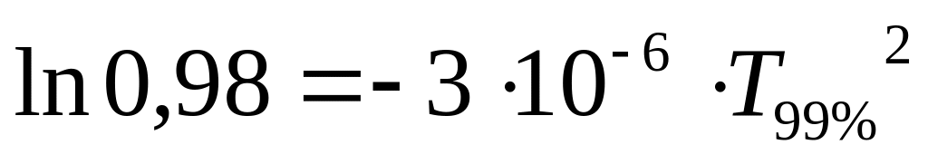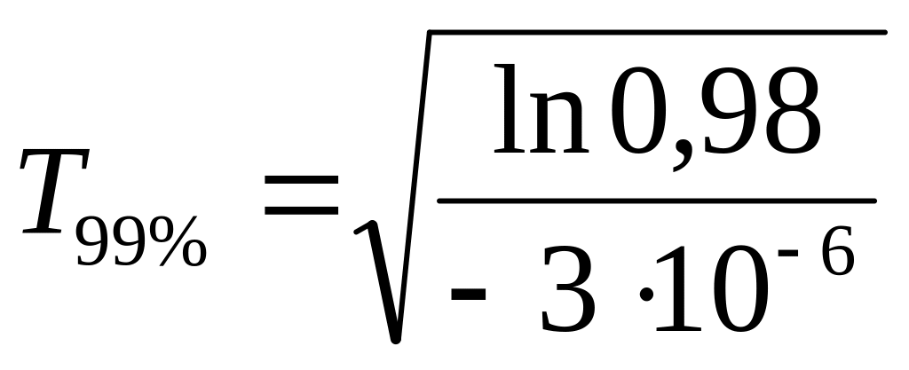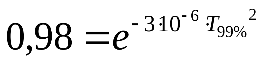 Пример 3. Для предыдущего примера найти наработку до отказа при вероятности безотказной работы 98 %.