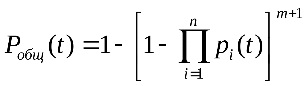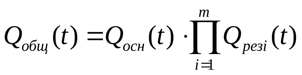Расчет безотказности ТО при резервном соединении элементов ведется следующим образом. Поскольку при общем резервировании отказ ТО наступит при отказе всех резервных и одного основного элемента, то при наличии резервных цепей вероятность отказа ТО будет равна произведению вероятностей отказа основной (Qосн(t)) и резервной (Qрезi(t)) цепей: