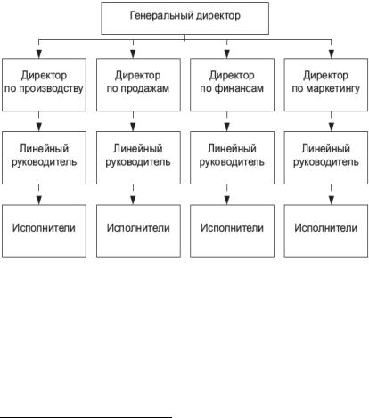Всоответствии с линейной структурой (по вертикали) строится управление по отдельным сферам деятельности организации: НИОКР, производство, сбыт, снабжение и т. д.