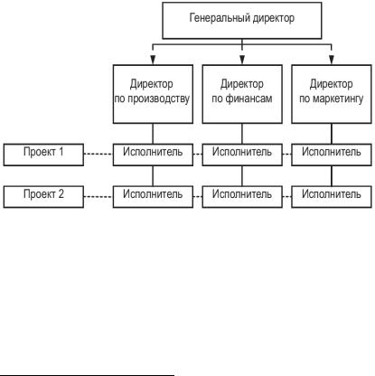 Врамках программно-целевой структуры (по горизонтали) организуется управление программами (проектами, темами). Как видно на рисунке 7, в установившуюся линейно-функцио- нальную структуру вводятся (временно или постоянно) особые