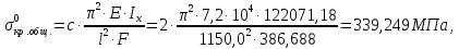 Критическое напряжение общей потери устойчивости стрингера в предположении о справедливости закона Гука будет равно: