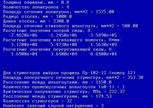 Подбор потребного количества стрингеров негерметичного отсека проводится на ЭВМ с помощью программы OTCEK.EXE. Результаты расчетов приведены на рисунке 4.2.