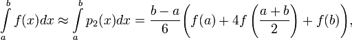 интеграл от интерполяционного многочлена второй степени на отрезке