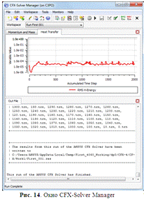 Чтобы открыть его, в окне Workbench следует выбрать «Solution» в структурной схеме модуля Fluid Flow (CFX) (Рис. 3). В появившемся диалоговом окне можно настроить некоторые параметры решения задачи и запустить CFX-Solver Manger.