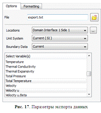 Функция экспорта данных CFD-Post позволяет экспортировать значения