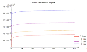 0.5 мм, 1 мм, 2 мм, 3 мм. График изменения средней кинетической энергии со