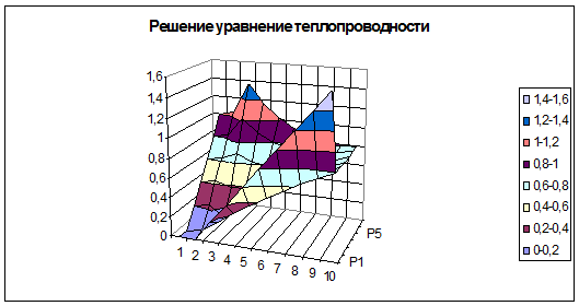 Рис.2.9. Графическое представление решение уравнения теплопроводности