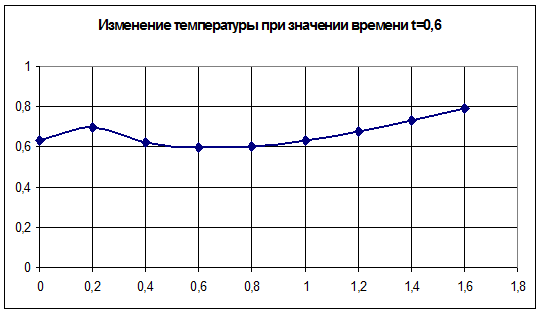 Рис.4.2. График изменения температуры в момент времени t=0.6
