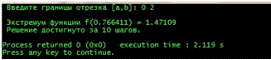 = a [3]. Итерация закончена, но длина отрезка, на котором локализован минимум