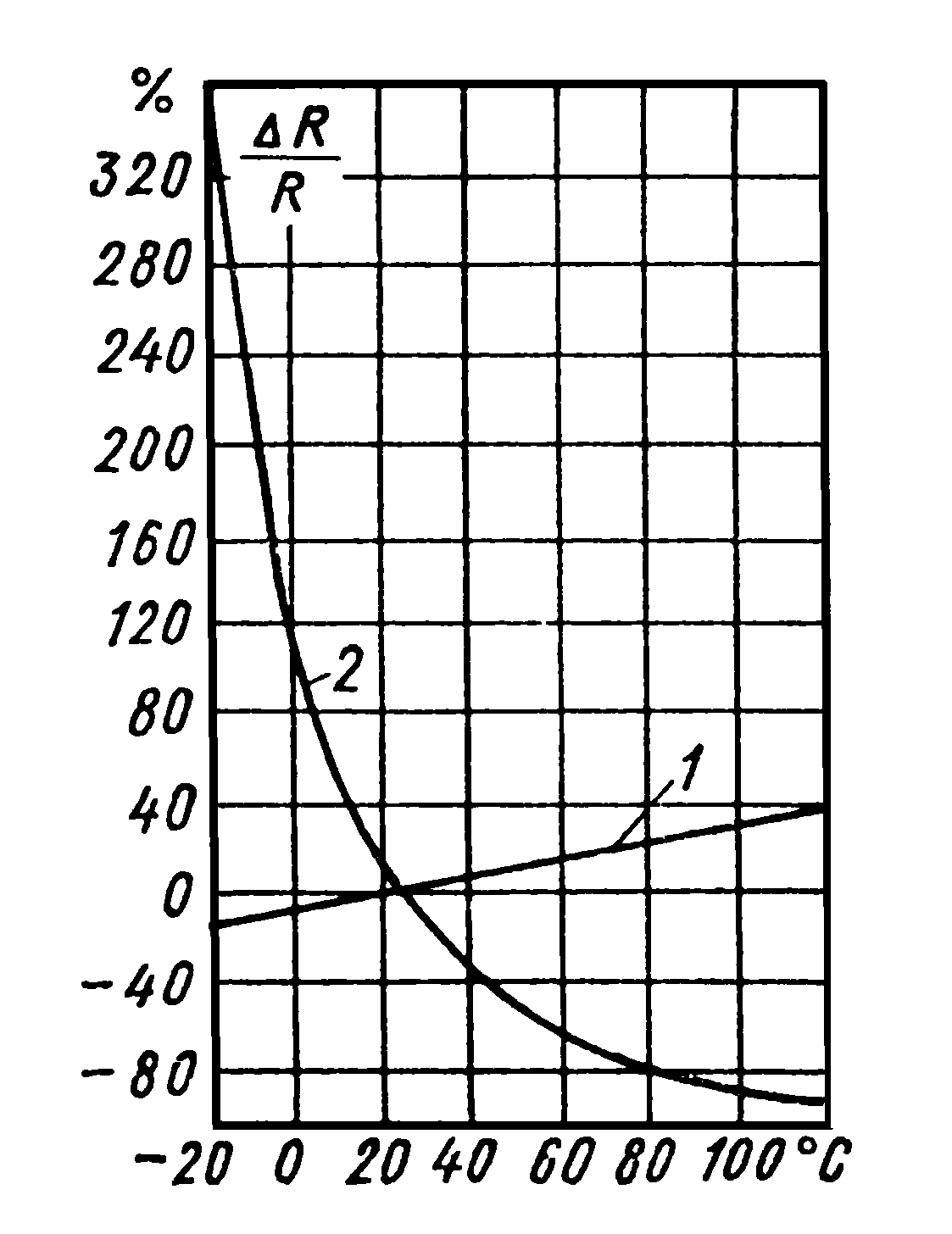 Кривая 2 соответствует термистору, а кривая 1 – медному резистивному ЧЭ.