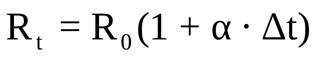 где Rt – сопротивление проволоки при температуре t, R0 – сопротивление при 0 °С, α – температурный коэффициент сопротивления (ТКС).