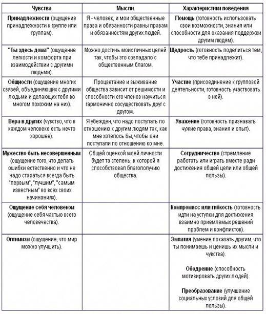 Таблица 3.1. Чувства, мысли и характеристики повеления человека, отражающие развитость у него социального интереса