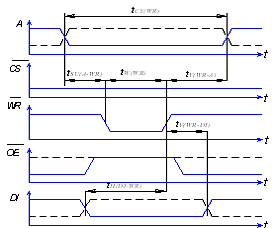 задержки сигнала записи (WR) относительно адреса;(DI-WR) - время опережения